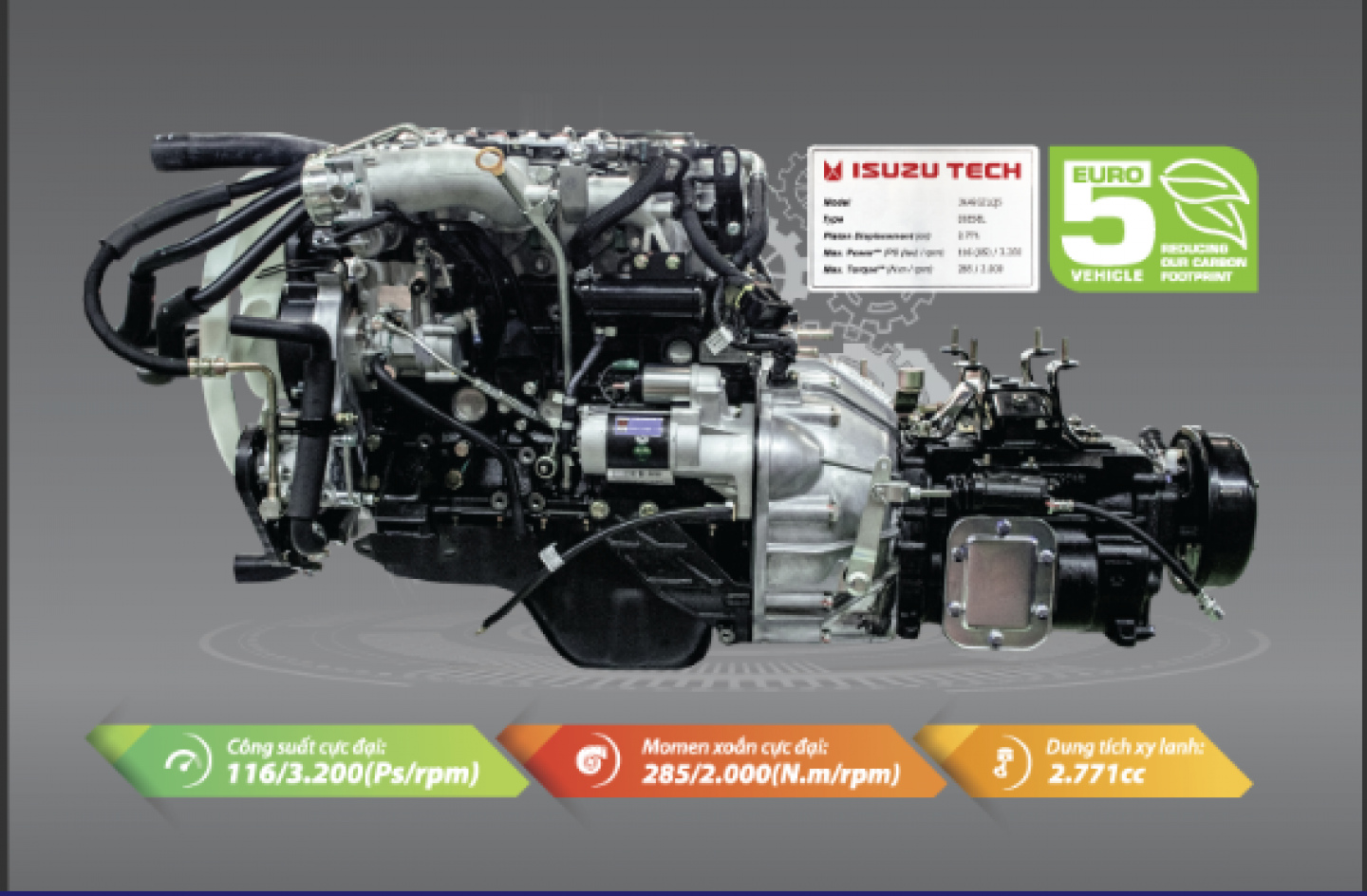 | Loại | Diesel 4 kỳ, 4 xy lanh, thẳng hàng, phun nhiên liệu trực tiếp (Bosch), tăng áp, làm mát bằng dung dịch | |||||